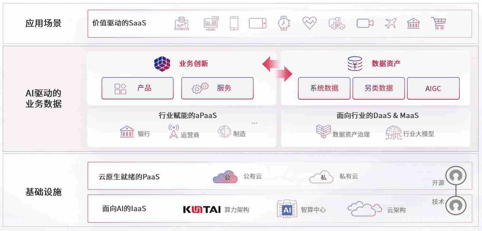数字时代,,,围绕企业数字化转型的关键要素,,恒盛娱乐数码开创性的提出数云融合战略和技术体系框架,,,着力在云原生、、、、数字原生、、、、AI原生和信创产业上架构产品和服务能力,,,,为处在不同数字化转型阶段的快消零售、、、、汽车、、、金融、、、医疗、、、政企、、教育、、运营商等行业客户提供泛在的敏捷IT能力和融合的数据驱动能力,,,构建跨界融合创新的数字业务场景和新业务模式,,助力企业级客户建立面向未来的核心能力和竞争优势,,全面推动社会的数字化、、、智能化转型升级。。