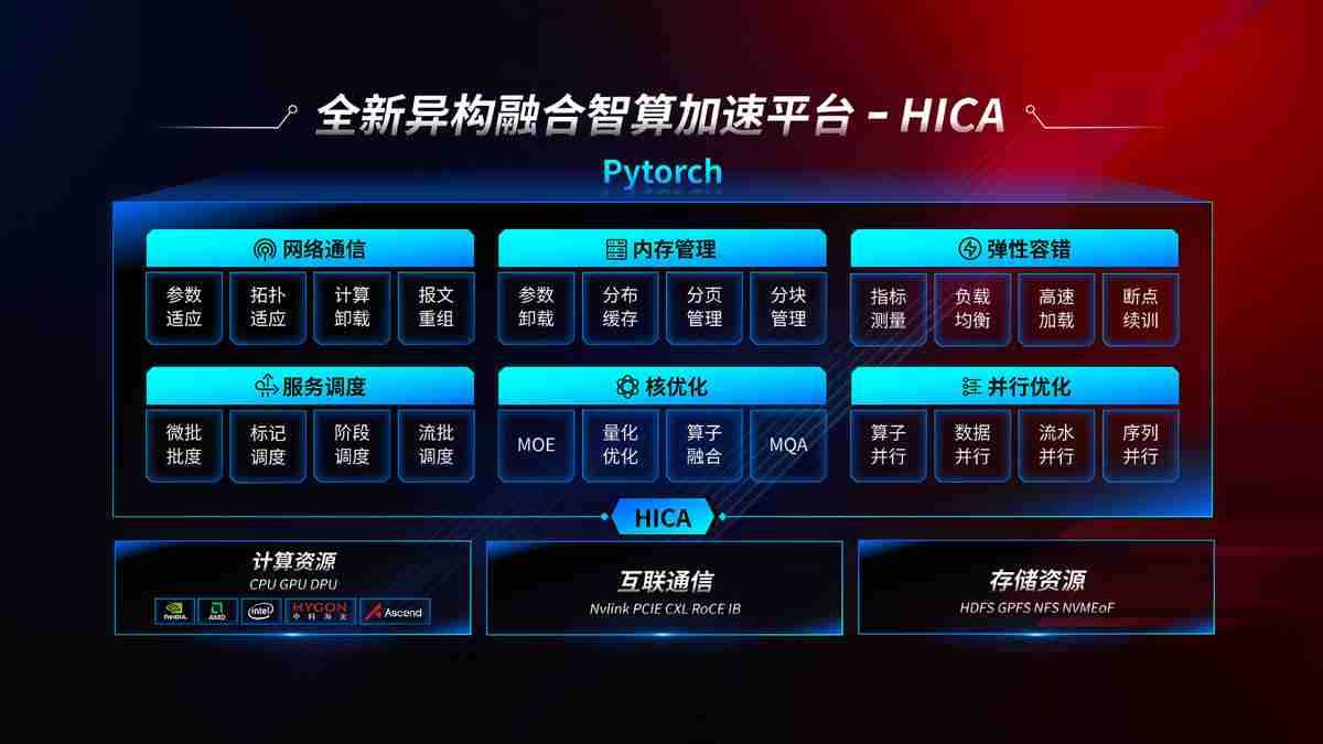 通过自研的服务层、、、、中间适配层、、、、以及调度编排算法,,,,采用数据并行、、模型并行等多种并行方式,,,,把并行计算任务进行有效的分解,,使其分别由相应的软件栈和算力资源来承接。。。。当GPU资源变化,,,,HICA可以实时动态调度计算子任务并调整模型拓扑和架构,,,,以充分聚合各种算力资源。。。